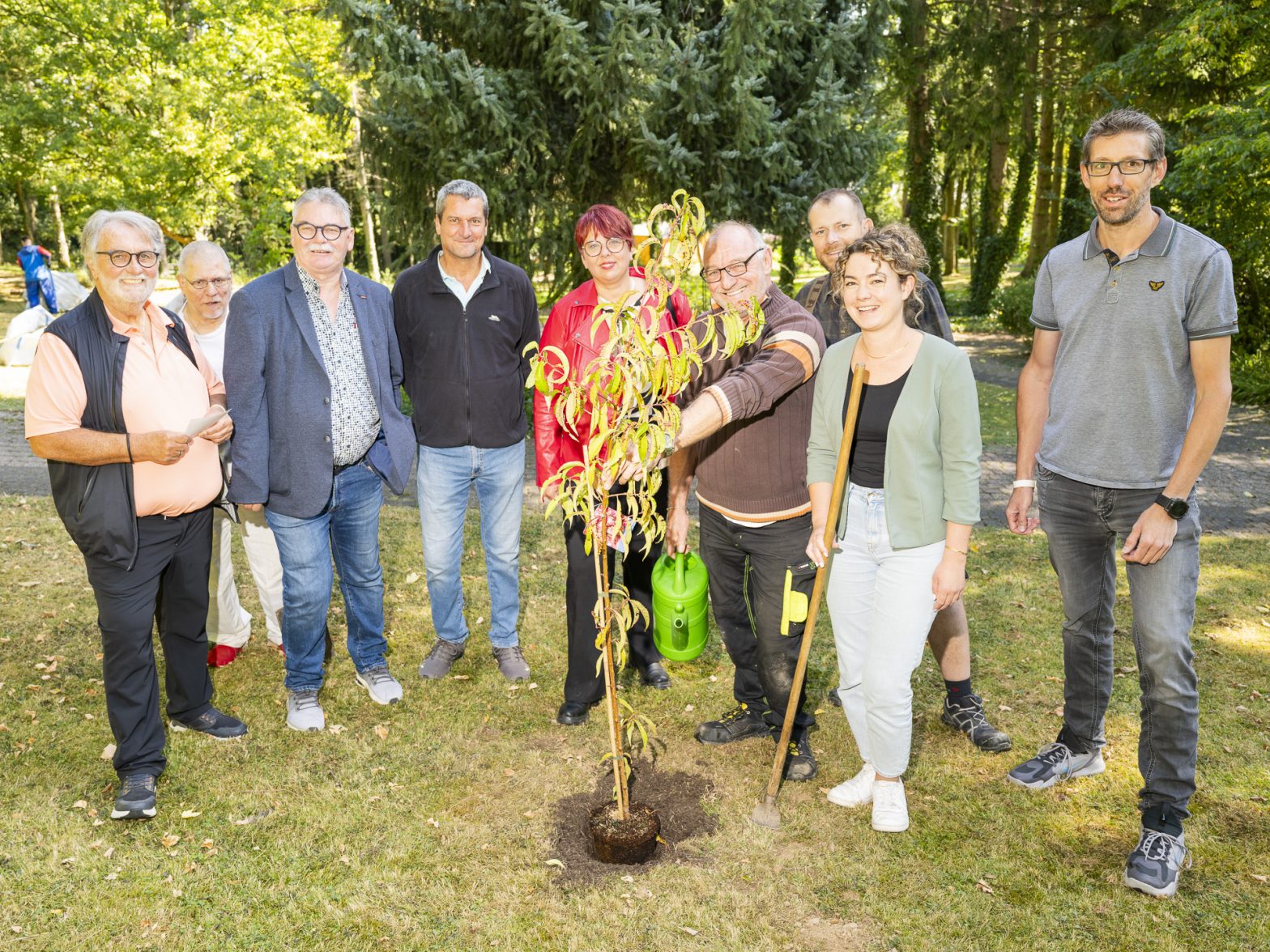 Neuer Pfirsichbaum wurde im Bad Münstereifeler Park von Haus Sonne gepflanzt – Geschenk der Kreis-SPD zum 40-jährigen Bestehen des gemeinnützigen Vereins, der sich um Menschen mit seelischen Beeinträchtigungen und/oder Suchterkrankungen kümmert
