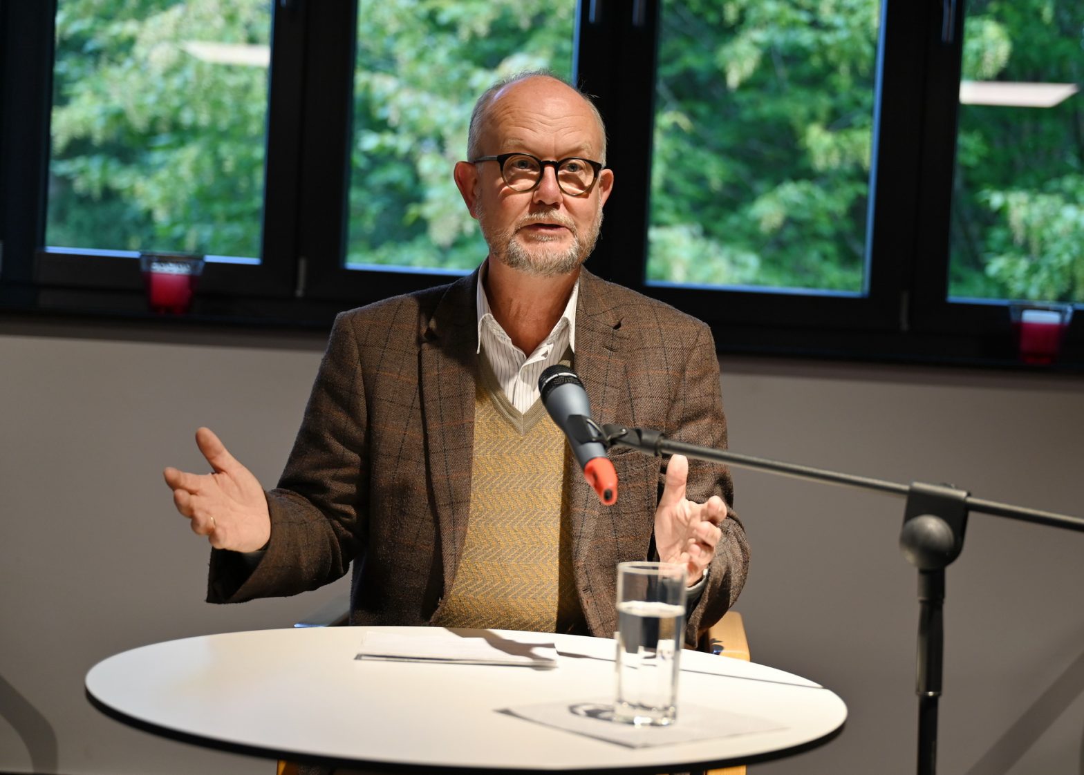 Thomas Hochgürtel vom Wohn- und Betreuungsverbund Haus Sonne für psychisch beeinträchtigte und/oder suchtkranke erwachsene Menschen setzte die Jubiläumsreihe 2025 fort und begrüßte ein vollbesetztes Auditorium. Foto: Manfred Lang/pp/Agentur ProfiPress